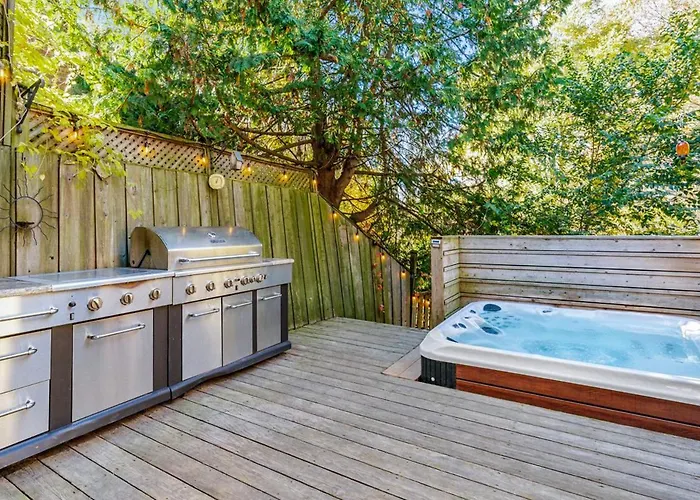 تقع في مدينة تورونتو، فيلا Hot Tub Haven هي ملكية تحتوي على 2 غرفة نوم، تتميز بالشرفة مع إطلالة على الحديقة. تتضمن المطبخ المجهز بالكامل و2 حمامات.